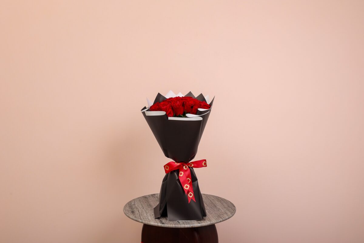 30 pink roses bouquet fabric wrapping 2