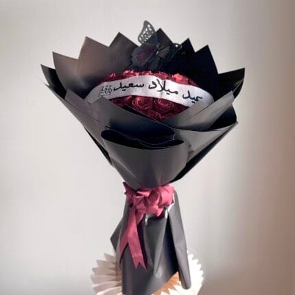 باقة عيد ميلاد سعيد ميكس روز وبيبي روز فوشيا ووردي واحمر مع شريطة عيد ميلاد سعيد